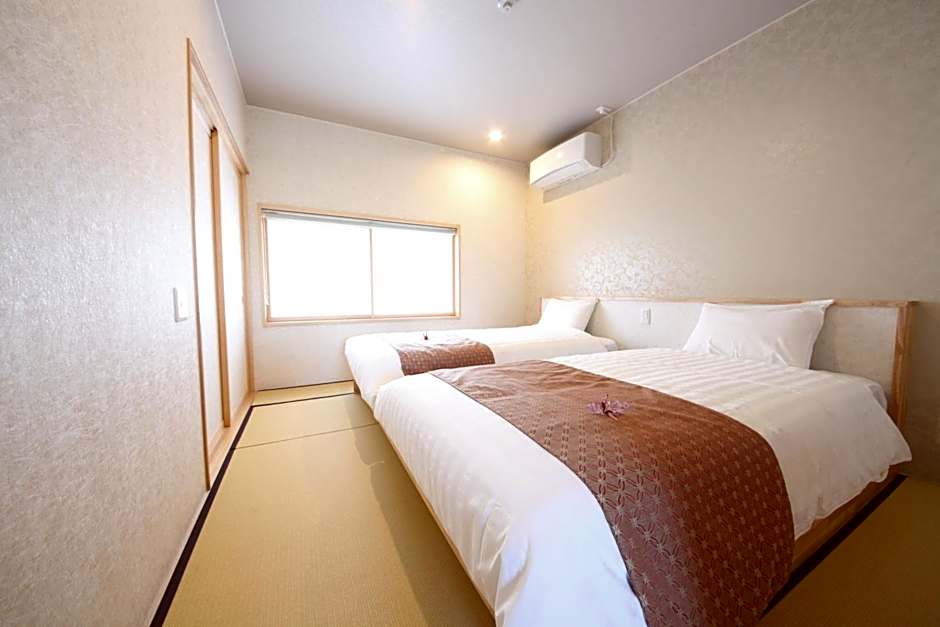 This family room features a fireplace. Featuring free toiletries, this family room includes a private bathroom with a shower, a bidet and a hairdryer. The air-conditioned family room features a flat-screen TV with satellite channels, a washing machine, tatami, a private entrance as well as garden views. The unit has 2 beds and 2 futons.