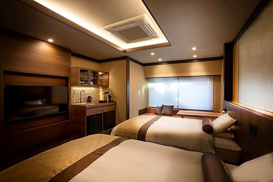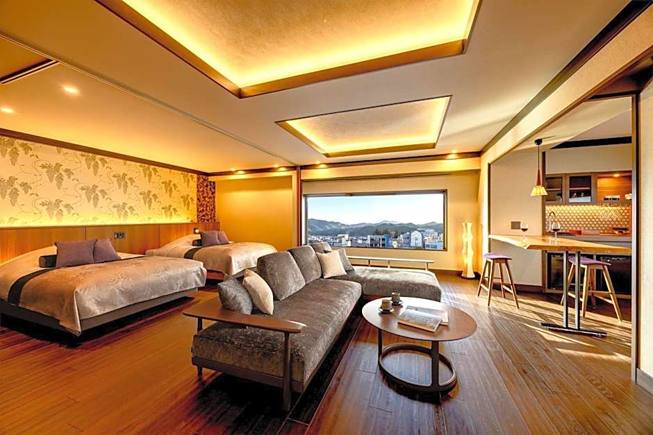 Guests will have a special experience as this suite provides a hot tub. This spacious suite is consisted of of 1 bedroom, a seating area and 1 bathroom with a bath and a shower. The air-conditioned suite offers a flat-screen TV with satellite channels, tatami, a mini-bar and a tea and coffee maker. The unit offers 2 beds and 2 futons.