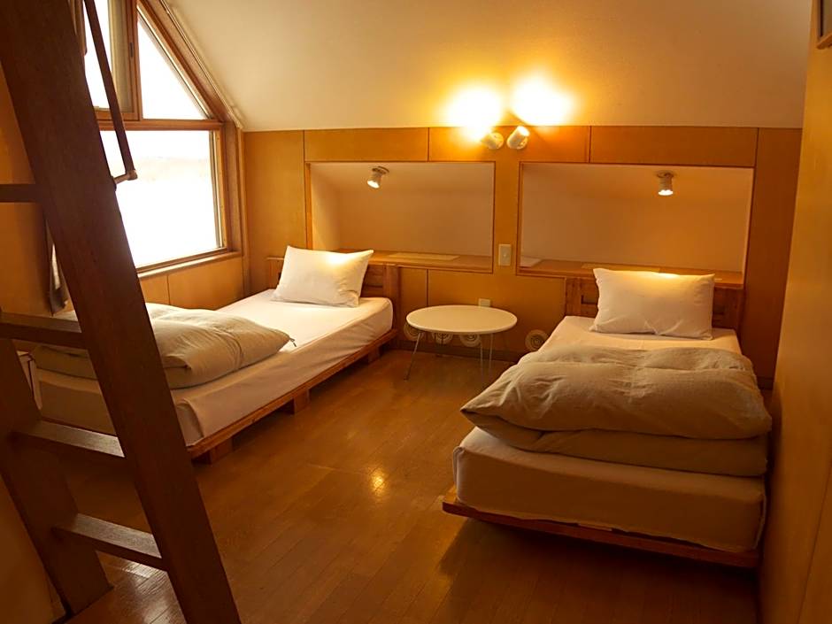 The hotel offers shared dormitory rooms, twin rooms, and Japanese-style rooms. The dormitory rooms can accommodate multiple guests, while the twin rooms come with two single beds, and the Japanese-style rooms feature traditional tatami mat flooring with futon bedding. Smoking is not allowed in any of the rooms.