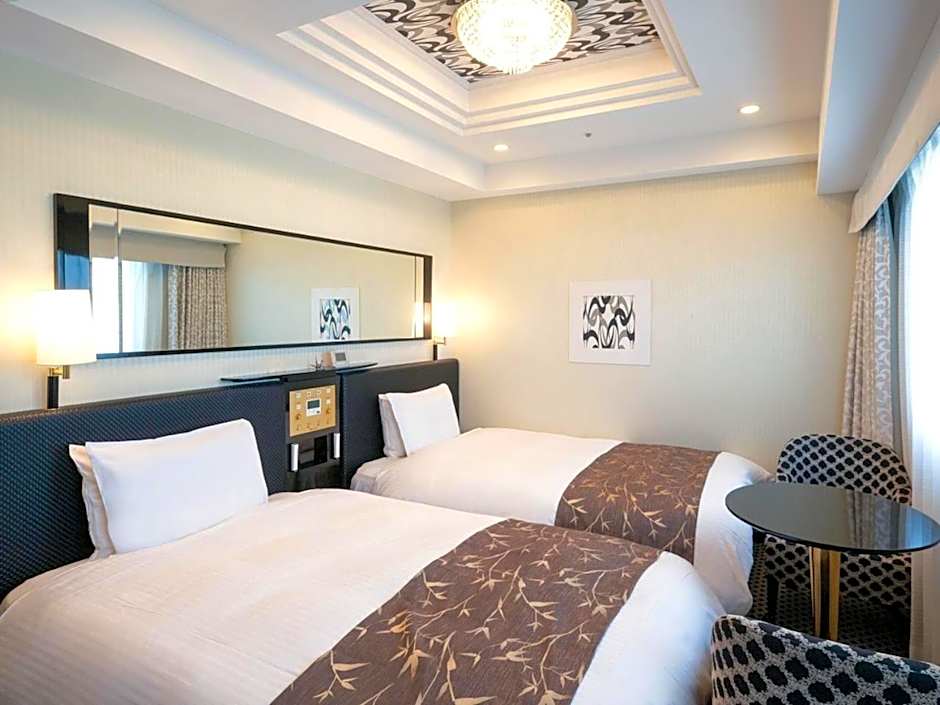 The twin room includes a private bathroom, well-fitted with a bath, a shower, a bidet, a hairdryer and slippers. The twin room features air conditioning, a tea and coffee maker, a carpeted floor, yukata and a flat-screen TV with satellite channels. The unit has 2 beds.
