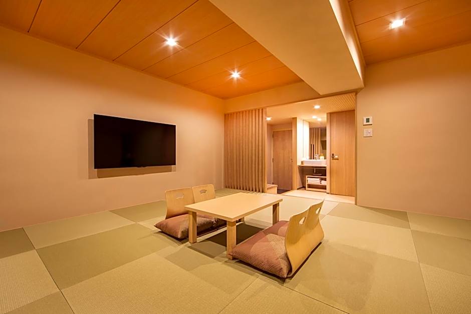 The quadruple room features air conditioning, tatami, a wardrobe, an electric kettle and a flat-screen TV with satellite channels. The unit has 4 futons.