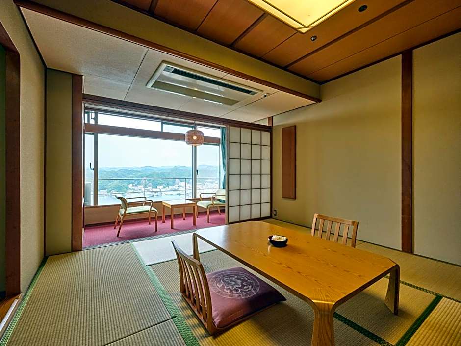 The spacious family room provides air conditioning, tatami, as well as a private bathroom featuring a bath and a shower. This family room features an electric kettle, yukata, a flat-screen TV and sea views. The unit offers 2 beds and 5 futons.