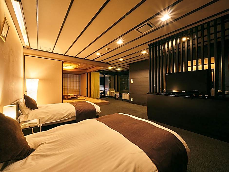 Offering free toiletries, this quadruple room includes a private bathroom with a bath, a shower and a hairdryer. The air-conditioned quadruple room offers a flat-screen TV with satellite channels, tatami, a seating area, a safe deposit box as well as city views. The unit offers 4 futons.