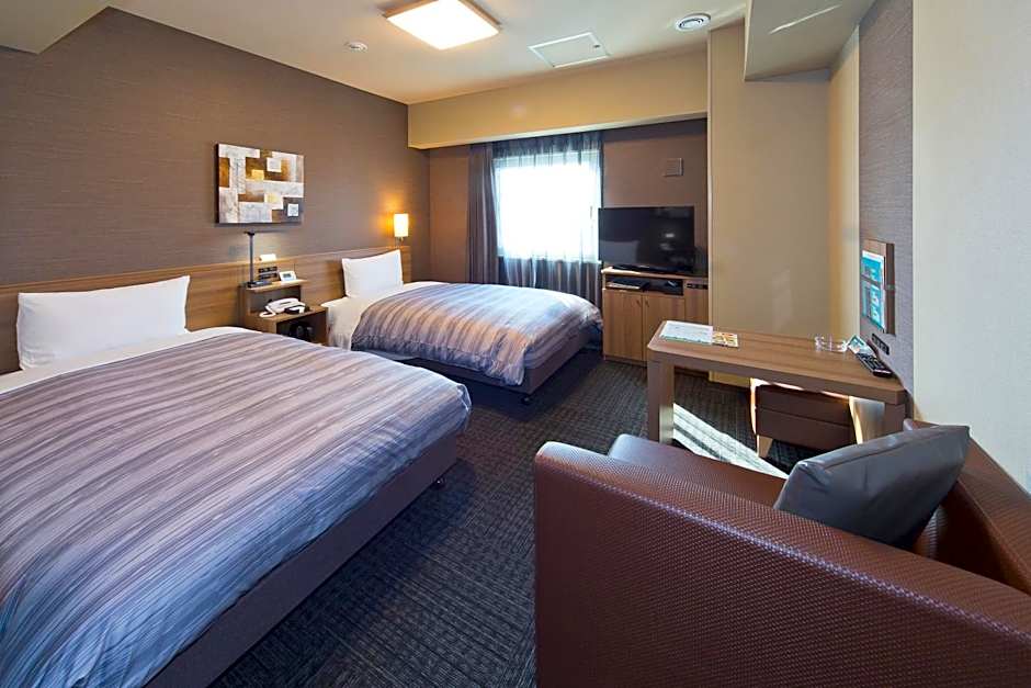 The Hotel Route-inn Yamaguchi Yuda Onsen offers a variety of room types, including Double Rooms with Small Double Beds, Single Rooms, Superior Single Rooms, Superior Twin Rooms, and Twin Rooms. Smoking is allowed in Single Rooms and Twin Rooms designated as smoking rooms, while the rest of the rooms are non-smoking. The rooms can accommodate either single or double occupancy and feature twin beds. The room sizes range from 183 sqft to 205 sqft.