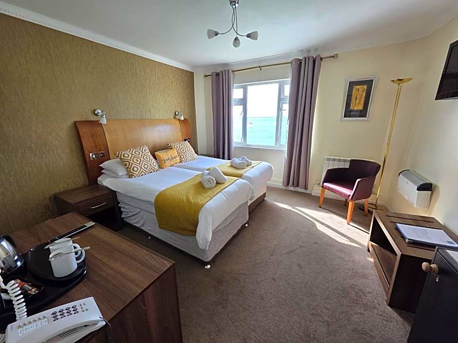 This south-facing, room with attached bathroom with direct sea views features 2 single beds and free Wi-Fi. It includes a plasma TV, telephone and tea and coffee making facilities.