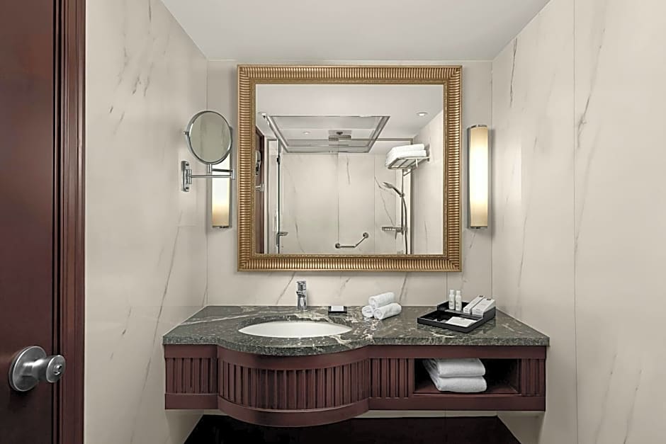 Offering a city view, this large suite includes a spacious seating area and 2 marble bathrooms.