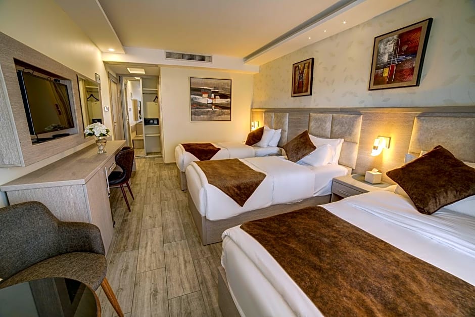 Sea views come standard in several room options. Deluxe, 2 Twin, Sea View is a 226-square-foot double with 1 Queen bed and 2 Twin beds, non-smoking, and accommodates 2 adults and 1 child. The Triple Room, Sea View measures 269 square feet and features 3 Twin beds, non-smoking, for up to 3 adults and 1 child. The Single Room, Sea View is 226 square feet with 1 Twin bed, non-smoking, and accommodates 1 adult.