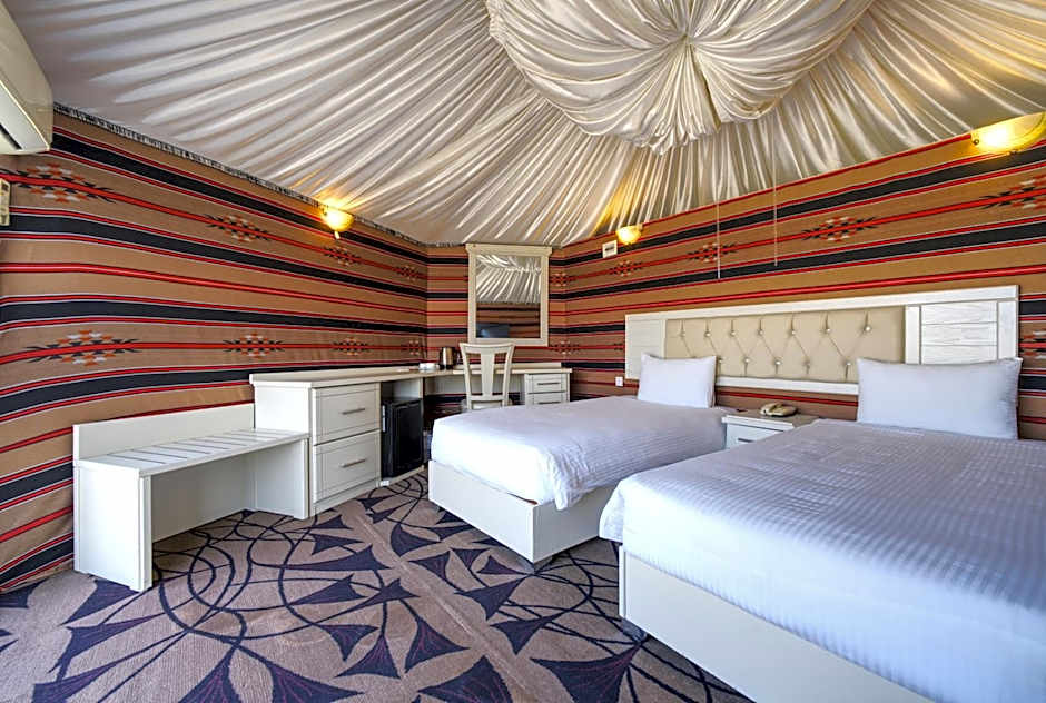 The Rock Camp Petra is a 5-star hotel in Wādī Mūsá, Jordan, about 6,5mi from the city center. Located on Little Petra Main Street, this desert retreat blends five-star comfort with dramatic surroundings and mountain views that make every sunset feel special.