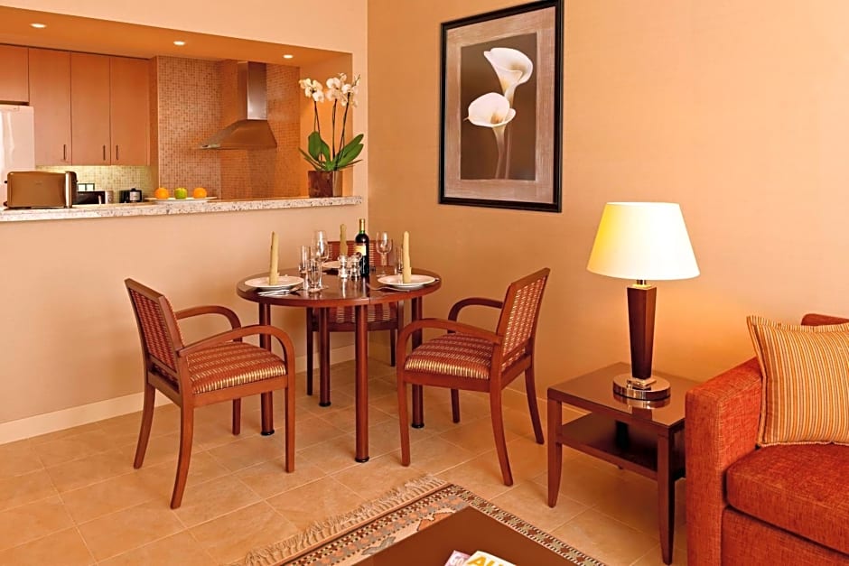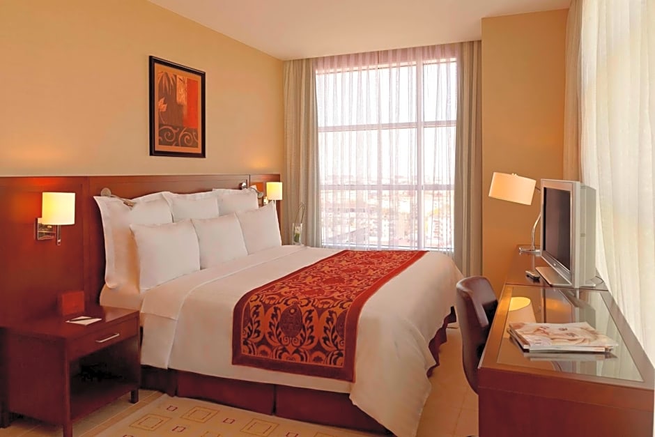 Guests at Marriott Executive Apartments Atyrau can enjoy a range of leisure amenities. They can relax in the sauna, work out in the fitness center, or play mini-golf on-site. The Bayterek restaurant offers European cuisine in a Family-Friendly and Modern ambiance for guests to savor. Additionally, visitors can make use of the 24-hour front desk, private parking, and free toiletries provided, ensuring a comfortable stay. Whether enjoying the terrace view or utilizing the kitchen facilities in their room, guests have various options to spend their time at the hotel.