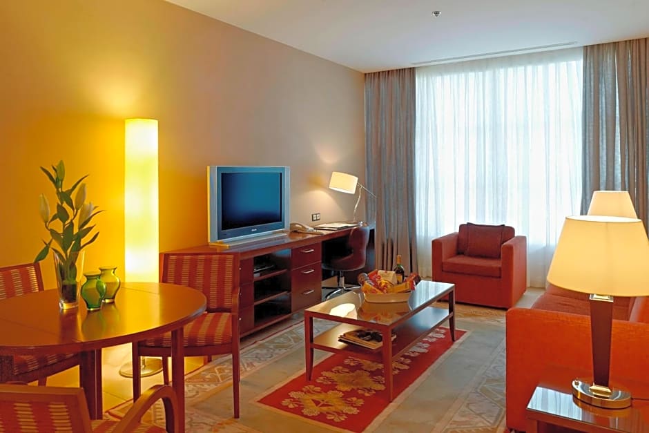 At Marriott Executive Apartments Atyrau, guests can choose from spacious two-bedroom apartments accommodating 4 adults and 3 children, featuring two Queen size beds and a city view. Three-bedroom apartments are also available for larger groups, accommodating 6 adults and 5 children with two Twin beds and two Queen size beds in a 1292 sqft space, all with city views. Additionally, there are smaller one-bedroom apartments accommodating 2 adults and 1 child with a King size bed, spanning 570 sqft and offering a city view. Smoking is not allowed in any of these apartment types.