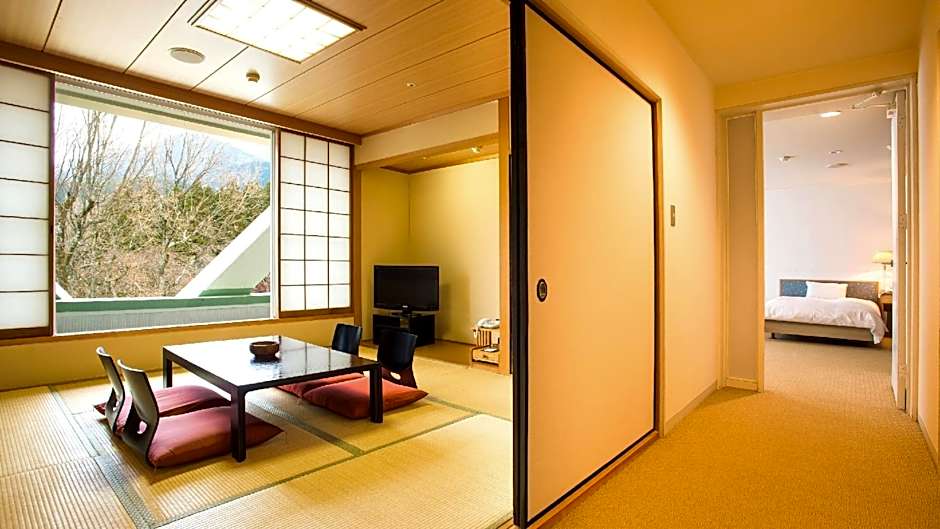 다양한 객실 유형은 1인 여행부터 여러 세대가 함께하는 모임까지 다양한 여행 스타일에 맞춥니다. 디럭스(506 sq ft)는 성인 4명과 어린이 3명을 수용하며 트윈 베드가 포함됩니다; 디럭스, 2 트윈, 싱글 유즈(쿼드러플)는 트윈 베드 2개로 최대 성인 4명까지 이용할 수 있습니다; 일본식·서양식(840 sq ft)은 성인 2명과 어린이 1명을 수용합니다; 스위트는 성인 8명과 어린이 5명을 수용합니다; 이코노미는 대규모 그룹에 적합하여 성인 10명과 어린이 6명을 수용합니다; 룸 - 2 트윈, 싱글 유즈(377 sq ft)는 트윈 베드 2개와 요(일본식 매트)로 성인 3명을 수용합니다; 패밀리, 싱글 유즈는 요 6개로 성인 6명을 수용할 수 있습니다. 기재된 모든 객실은 금연이며, 일부 디럭스 룸은 산 전망을 제공합니다.