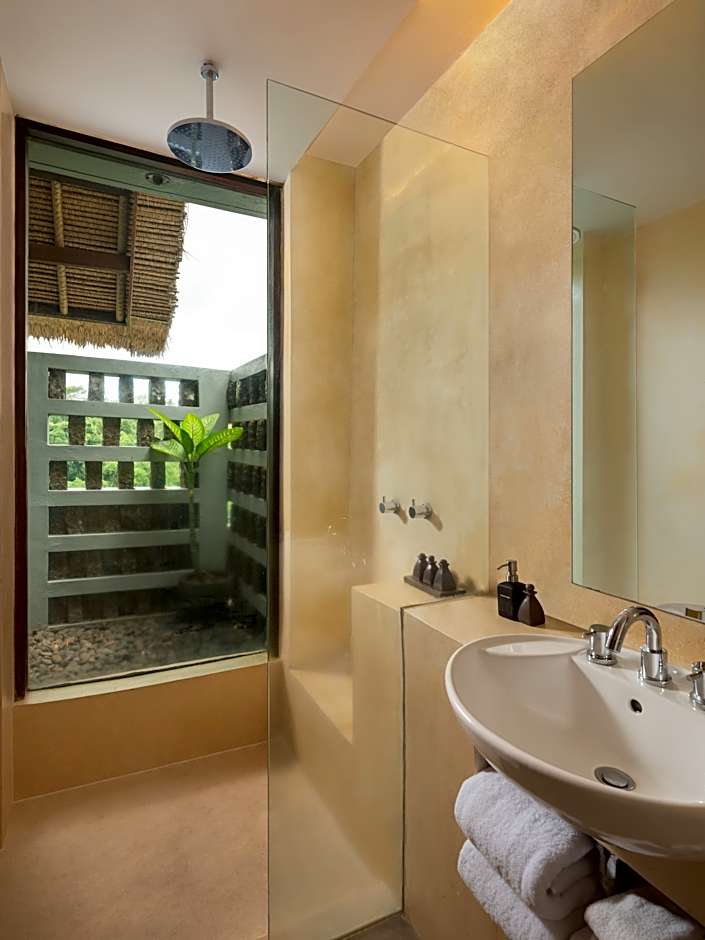 우붓 근처 완만한 언덕에 자리한 이 리조트는 발리식 매력과 고요한 풍경이 어우러진 곳입니다. 객실 유형은 강 전망 및 정원 전망 객실로 나뉘며, 많은 객실에 발코니 또는 테라스가 있어 평온한 주변 경관을 감상할 수 있습니다. 내부 공간은 편안한 숙박을 위해 에어컨과 무료 세면도구를 포함하여 차분한 전망을 제공합니다.