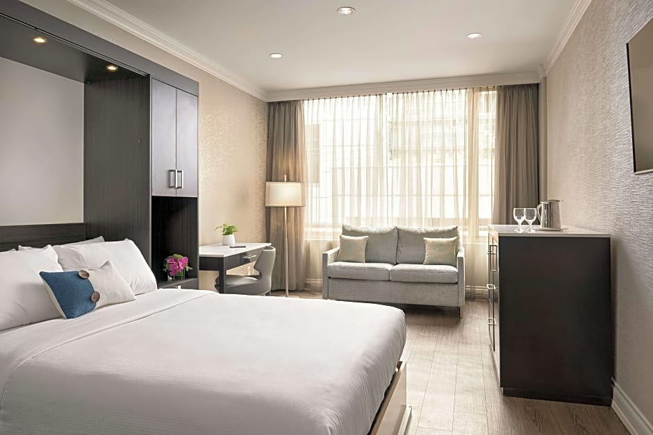 객실, 퀸 침대, 머피베드, 휠체어 접근 가능, 롤인 샤워