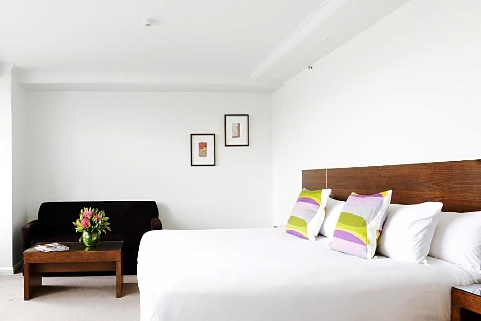 멜버른의 186 Exhibition Street에 위치한 이 호텔은 엘리베이터로 이동 가능한 상층부와 방음 객실을 갖추어 프라이버시를 강화했습니다.