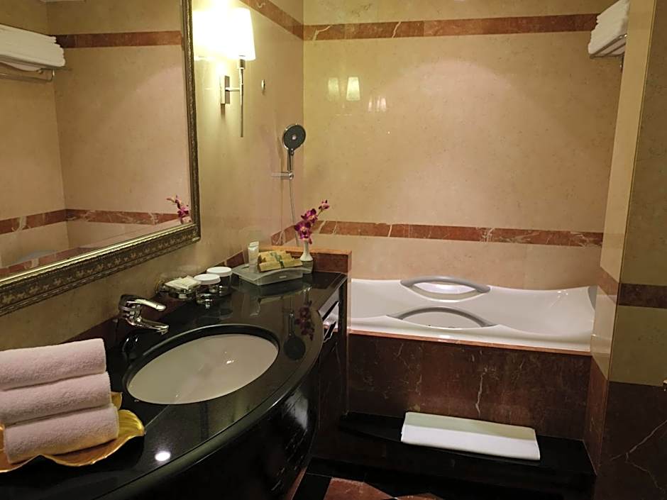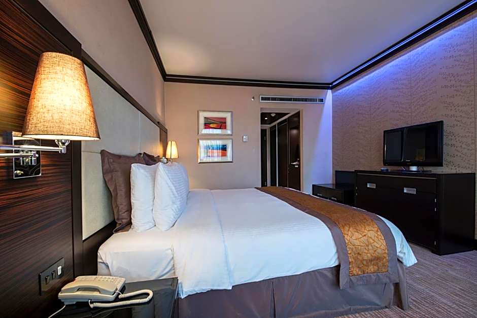 The hotel offers a variety of room types including Standard King Rooms, King Rooms with Pool View, One-Bedroom King Suites with Pool View, Superior King Rooms, Standard Double Rooms, Superior Twin Rooms, One-Bedroom King Suites with a Jetted Tub, Ambassador King Suites, and Junior King Suites. All rooms are non-smoking and have a room size of 388 sqft, except for the One-Bedroom King Suite with Jetted Tub which is 495 sqft, and the Ambassador King Suite which is 570 sqft. The rooms can accommodate between 2-4 adults and 1-3 children and have different bed configurations.