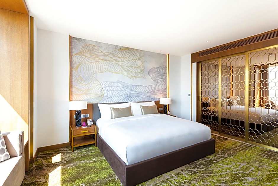 Providing free toiletries and bathrobes, this suite includes a private bathroom with a walk-in shower, a bath and a bidet. The suite's kitchenette, which features a refrigerator, is available for cooking and storing food. The spacious air-conditioned suite provides a flat-screen TV with streaming services, a mini-bar, a tea and coffee maker, executive lounge access as well as pool views. The unit offers 1 bed.