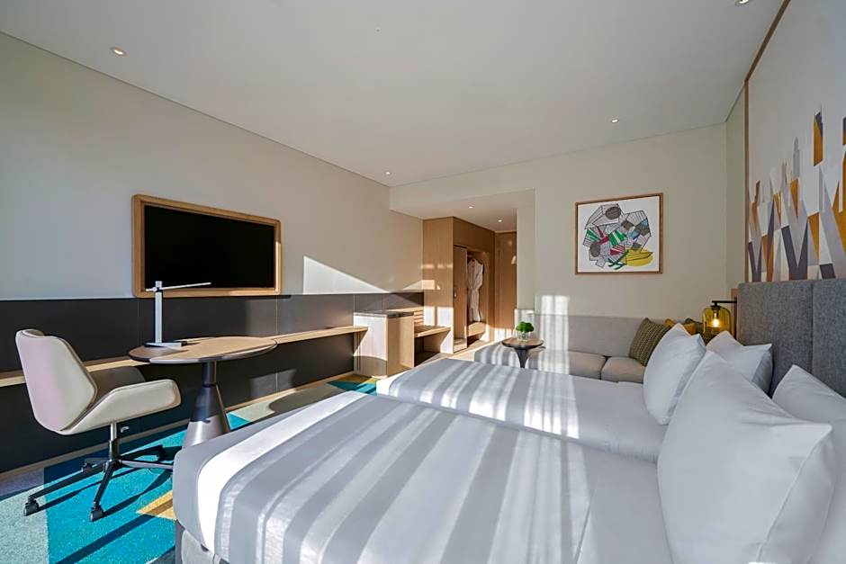 Meals can be prepared in the well-fitted kitchenette, which comes with a stovetop, kitchenware, a microwave and an electric kettle. The spacious air-conditioned suite provides a flat-screen TV with satellite channels, soundproof walls, a mini-bar, a seating area as well as city views. The unit offers 1 bed.