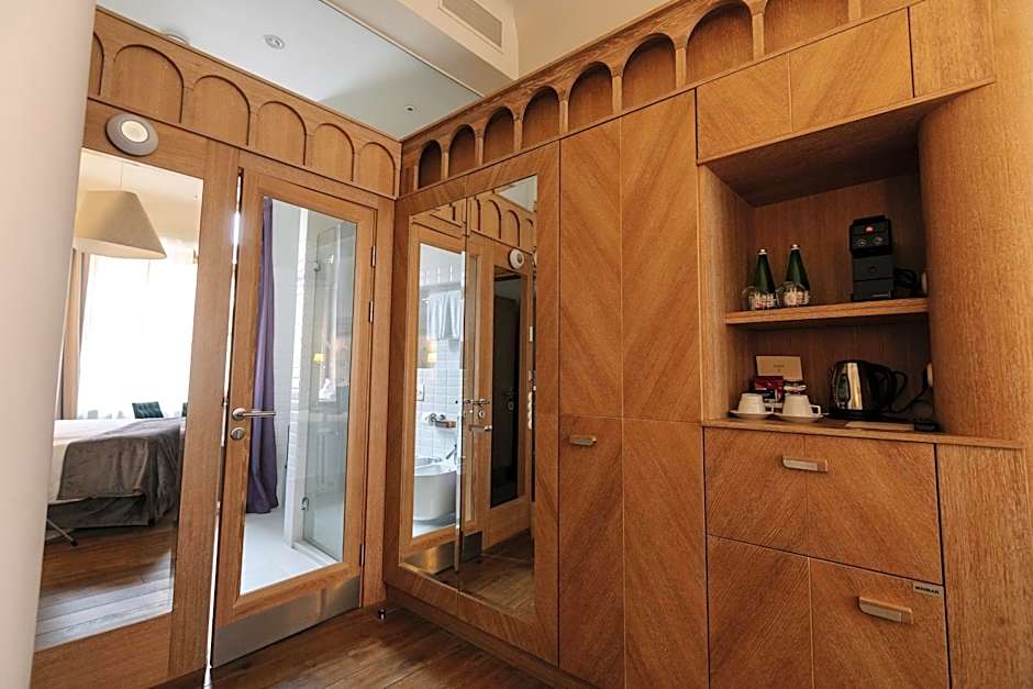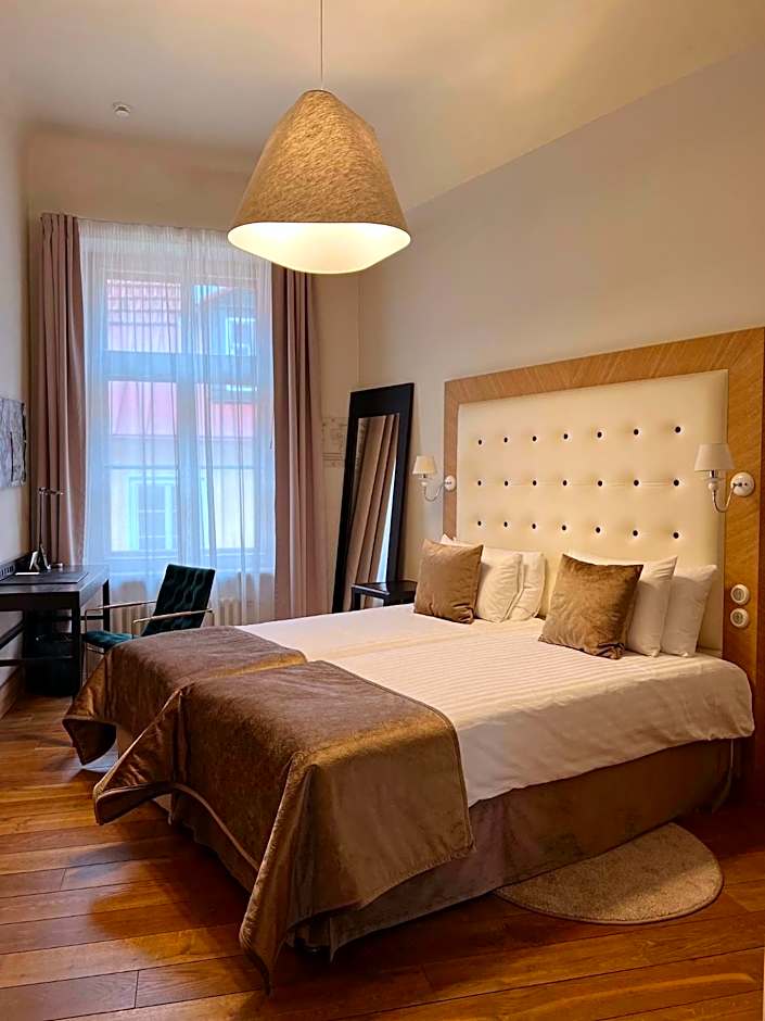 Elegantly designed room with Art Deco and modernism elements. It comes with extra-long beds and a private bathroom with a bath or shower, toiletries, bathrobes and slippers.