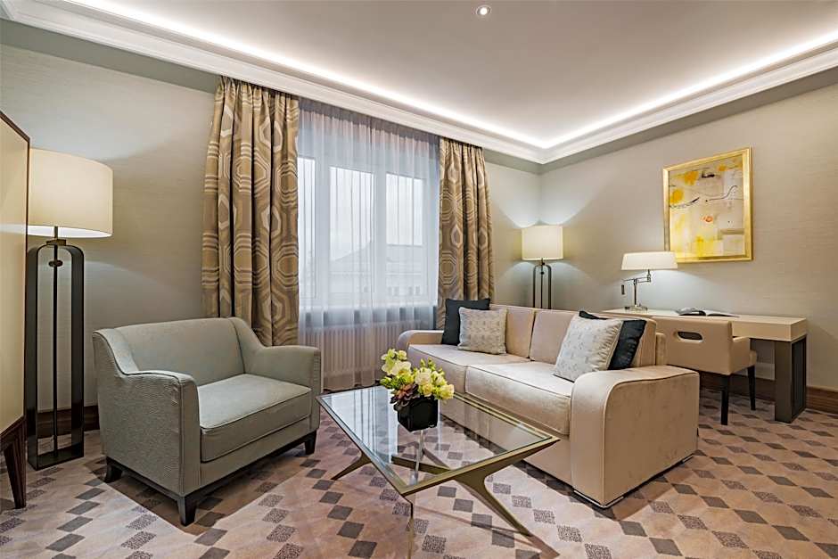 Presidential Suite merges luxury and modern amenities. The room offers outstanding quality materials, contemporary design and breathtaking view overlooking the National Opera House, the Monument of Freedom and the City Park.
