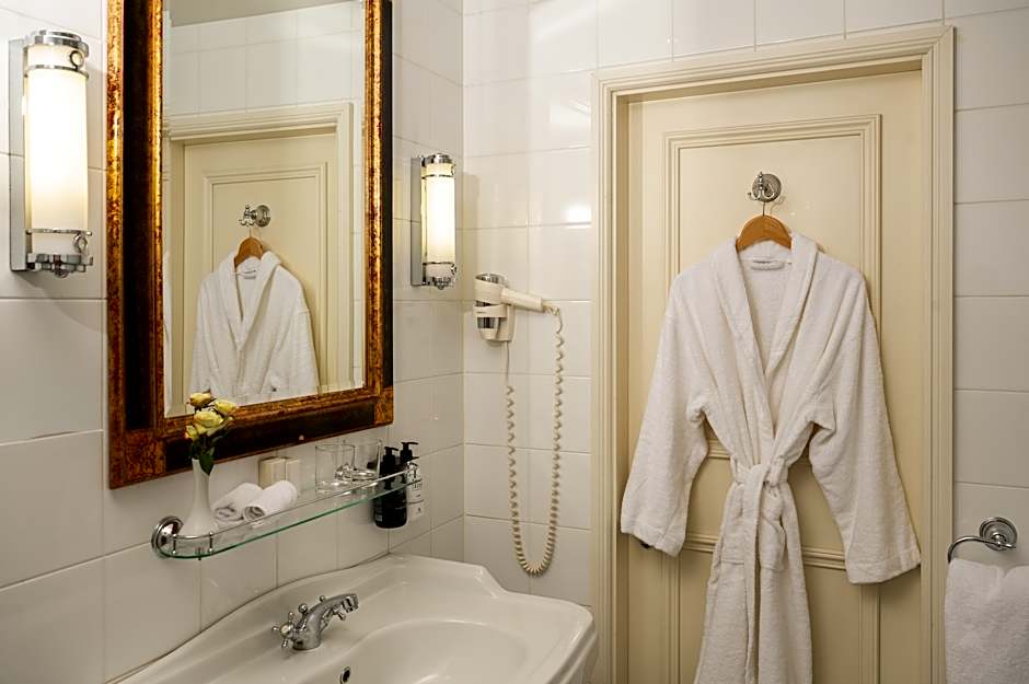 The Junior Suite provides an ambiance of comfort, elegance and luxury to welcome business and leisure travelers. The interior exudes a light atmosphere. 37 square yard, 1 double bed, air-conditioning, free high-speed Wi-Fi, flat screen TV, sitting area, Espresso machine, walk in wardrobe, safe, mini-bar, sofa, desk, guest amenities. Bathroom with heated tile floor, bathtub with separate shower, slippers, bathrobe, hairdryer and sustainable, organic, vegan luxury bathroom amenities.