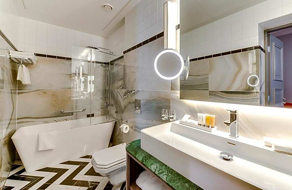 The air-conditioned suite features 1 bedroom and 1 bathroom with a bath and a shower. The suite provides a mini-bar, a tea and coffee maker, a seating area, a flat-screen TV with cable channels, as well as city views. The unit offers 1 bed.