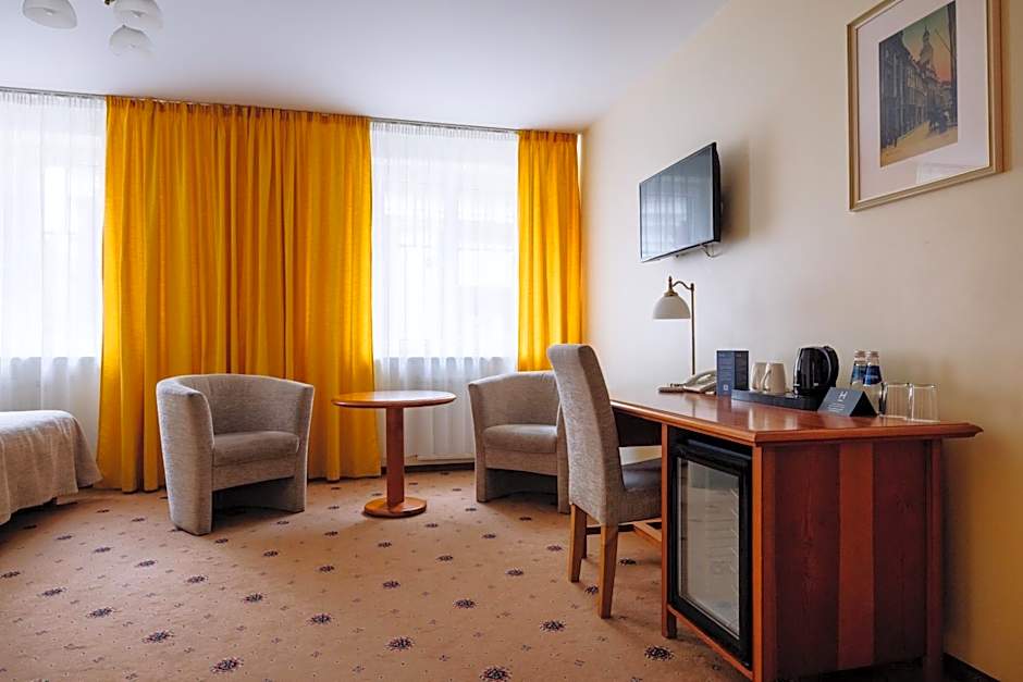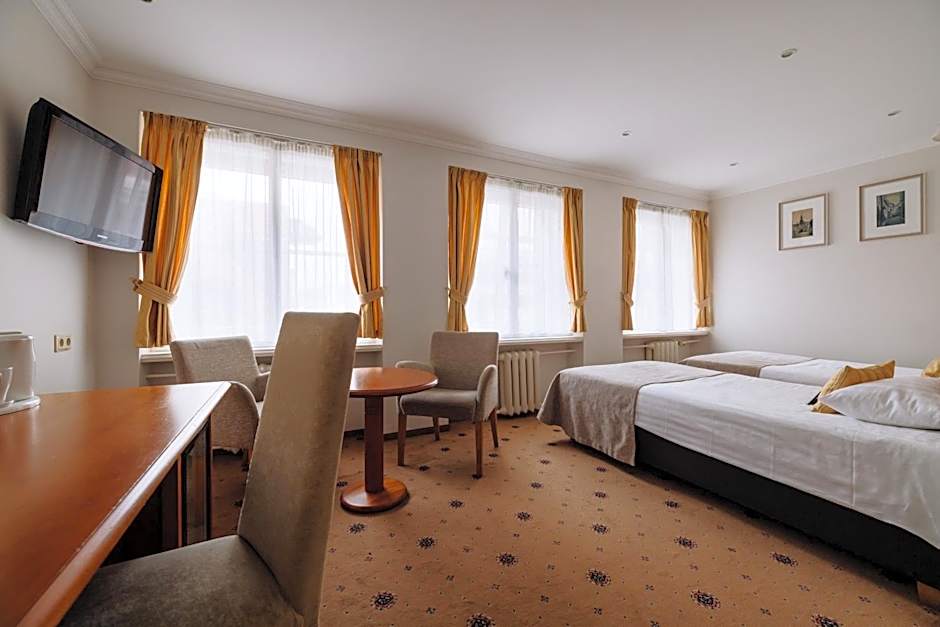 The twin room features a carpeted floor, heating, as well as a private bathroom featuring a shower and a hairdryer. The air-conditioned twin room provides a flat-screen TV with satellite channels, a wardrobe, a safe deposit box, an electric kettle as well as city views. The unit offers 2 beds.