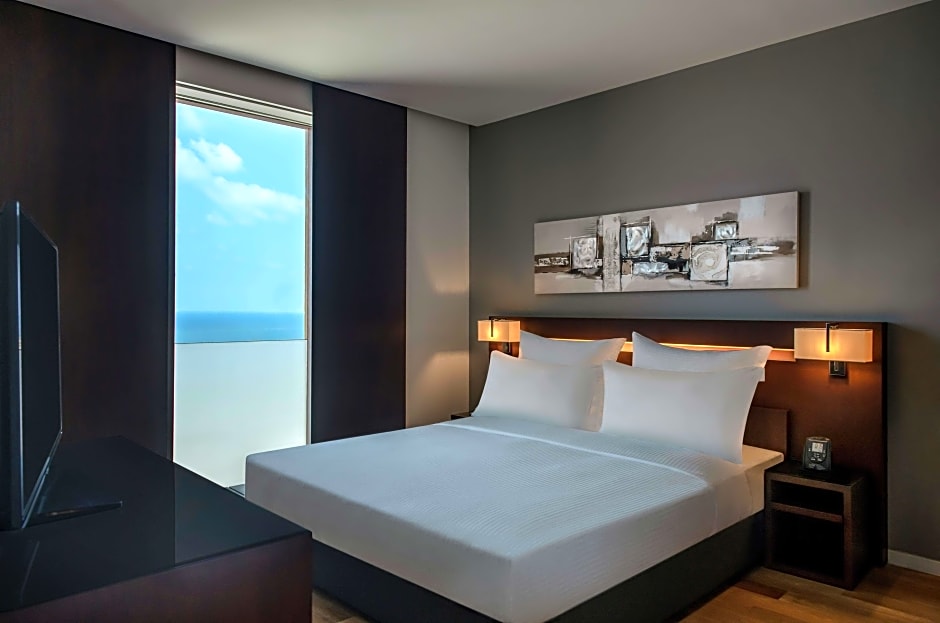 Offering Executive Lounge access and sea views, this modern room is equipped with a 40-inch HDTV, a laptop safe and a mini-bar. Other amenities include tea-and-coffee-making facilities, as well as an iron and ironing board.
