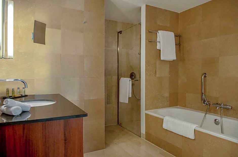 Offering Executive Lounge access, this spacious suite features a balcony, a living area and a dining area. It is equipped with a 40-inch HDTV, a laptop safe and a mini-bar. Other amenities include tea-and-coffee-making facilities, as well as an iron and ironing board.