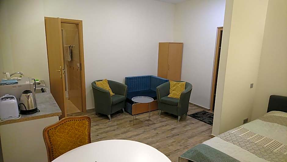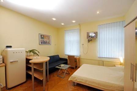 An apartment with a separate living room with a sofa bed. There is a fully equipped kitchen, as well as a bathroom with shower or a bathtub. Some apartments have a balcony.