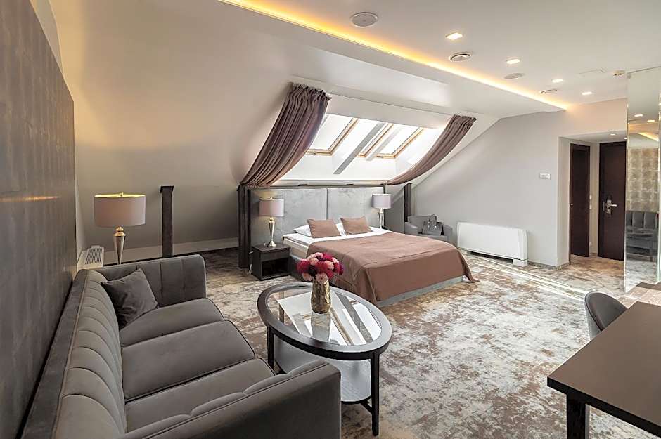 This suite in a mansard features an electric kettle, a separate lounge area with a sofa bed, mini-bar and air conditioning.