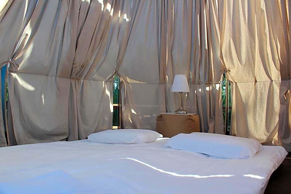 The tent features a private entrance, a dining area, a terrace with lake views as well as a private bathroom boasting a shower. The unit has 1 bed.