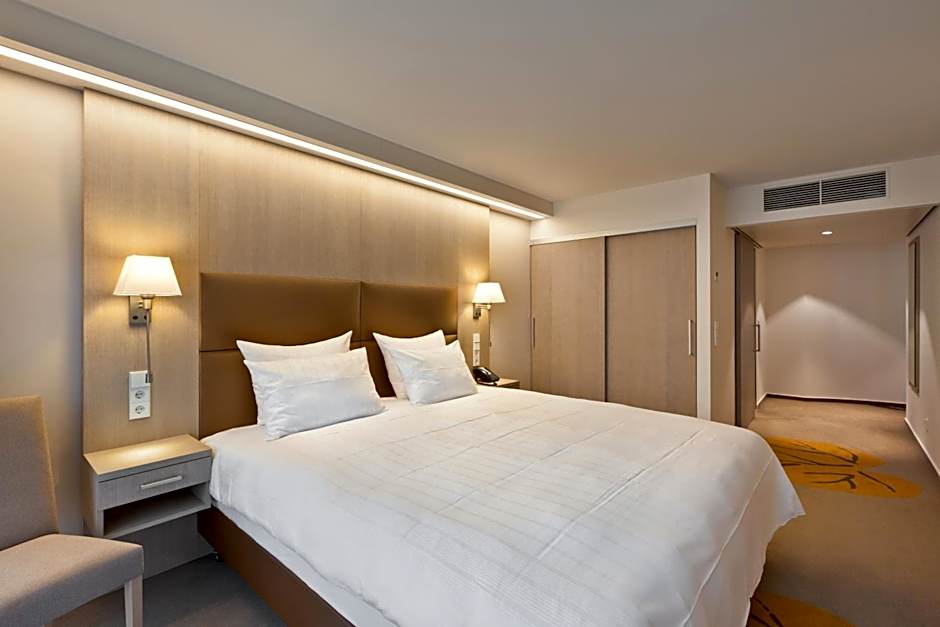 This room includes free access to Mondorf Thermal Domain Spa, which features thermal basins at 36°, 12 types of saunas, multiple hammams and hot tubs. It also features spacious, quality sports and muscle building facilities. The thermal water that comes from the springs in the accommodations is know for its healing properties. The wellness center also offers customized programs created by nutritionists and dietitians, doctors, physiotherapists, and sport coaches.