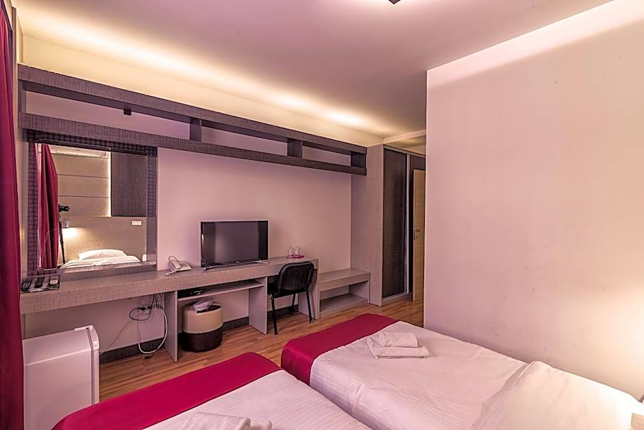 This twin room has air conditioning, a mini-bar and a Samsung Smart flat-screen TV.