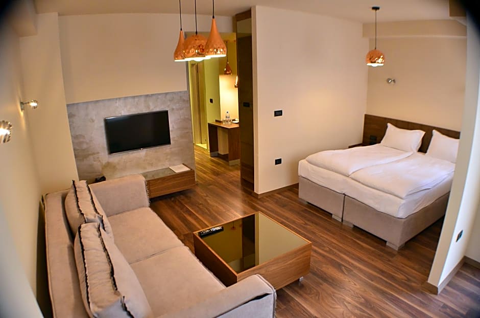 This suite features a flat-screen TV, bathrobe and mini-bar.