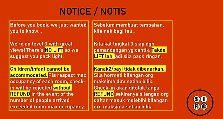 Walk-Up To SIAR - Children Not Allowed is a 4-star retreat in Brinchang, Malaysia. Situated about 1,8 mi from the city center, it offers a mountain escape vibe in the Kea Farm area. Address: Shop 43-3 & 45-3 Lorong Palas Horizon 2/3 Palas Horizon, Kea Farm, Pahang.