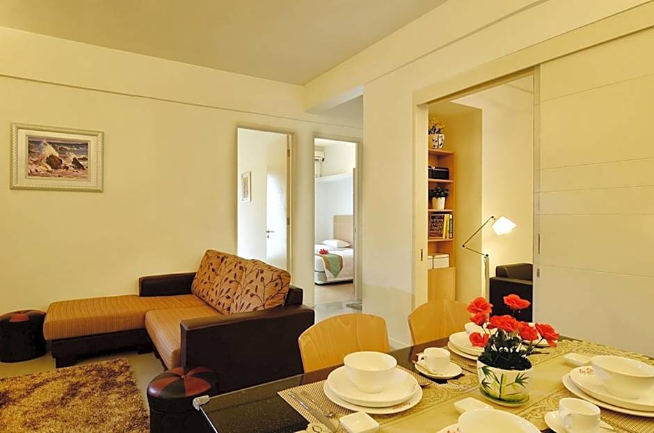Modern 2-bedroom suite with a living room with a flat-screen TV, dining table, hot/cold water purifier and kitchen. There is also a study room, while free WiFi access is provided.