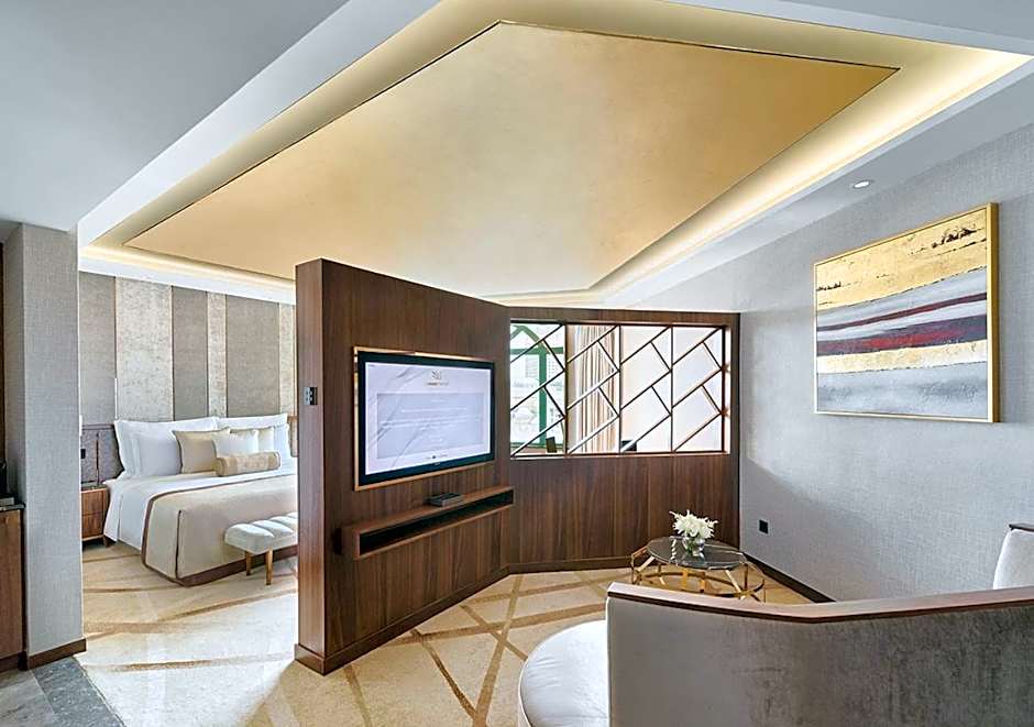 This room features elegant interiors, a marble bathroom and premium fixtures and fittings. It is fitted with a 50-inch IPTV, and the private bathroom offers a walk-in chromotherapy shower and LED-lit mirror. Thirty of the rooms have a private balcony and with connecting rooms also available.