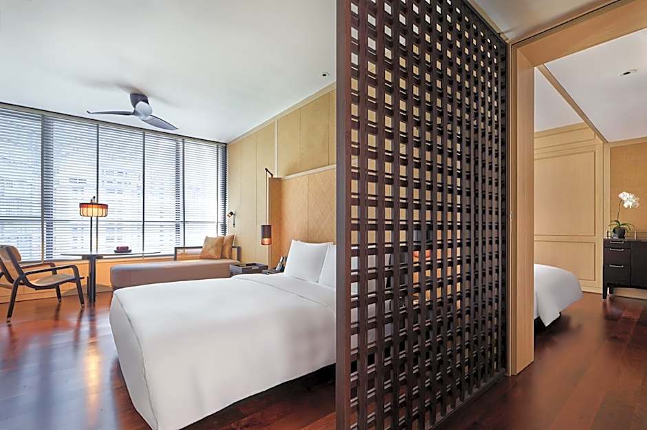 Fitted with 2 single beds, this elegant twin room is well-appointed with modern amenities and city view. A coffee machine and traditional tea set are provided. The private bathroom includes a rainshower and double vanity.