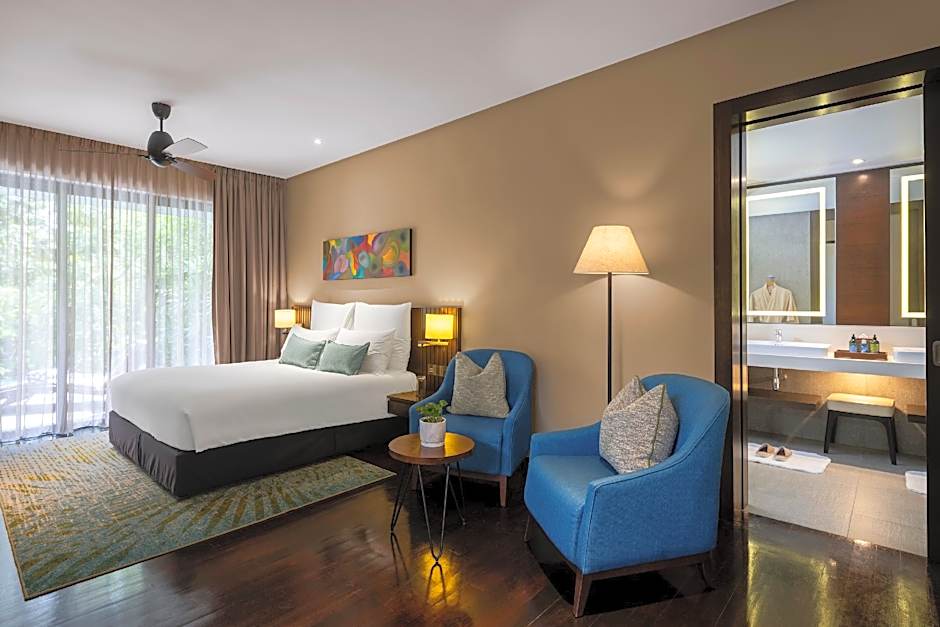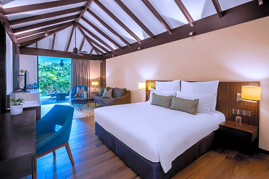Boasting a private salt-water pool, this larger villa is furnished with wooden fittings and a living area. Fitted with contemporary design, it also has has a flat-screen TV and a garden. The spacious private bathroom includes separate bath and shower.