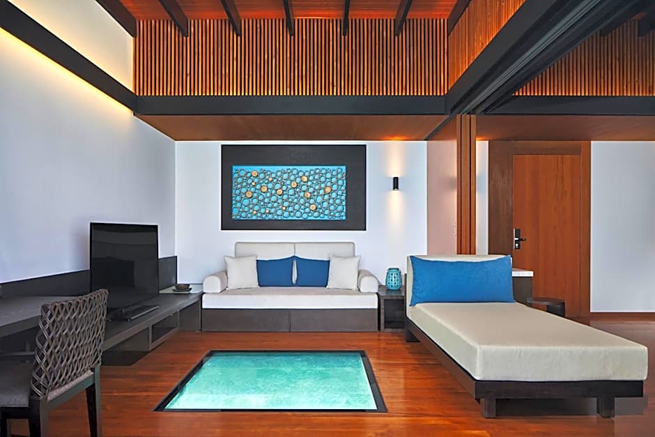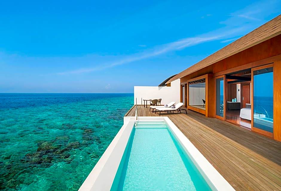 Immerse yourself in surrounding yourself with the beauty and vastness of the ocean in a 200 sqm villa. Built upon wooden stilts above the shimmering turquoise lagoon, and with floor-to-ceiling windows that make the most of the unforgettable panoramic Maldivian views. Couples will love the understated contemporary luxury of this watery hideaway. Guests will also find a large glass floor cut out in the main living space that provides a viewing area to admire the diverse Maldivian marine life below. The Westin Maldives Miriandhoo Resort signature Heavenly® Bed and Heavenly Bath®, plus a secluded shower outdoors assist in creating a rejuvenating experience.