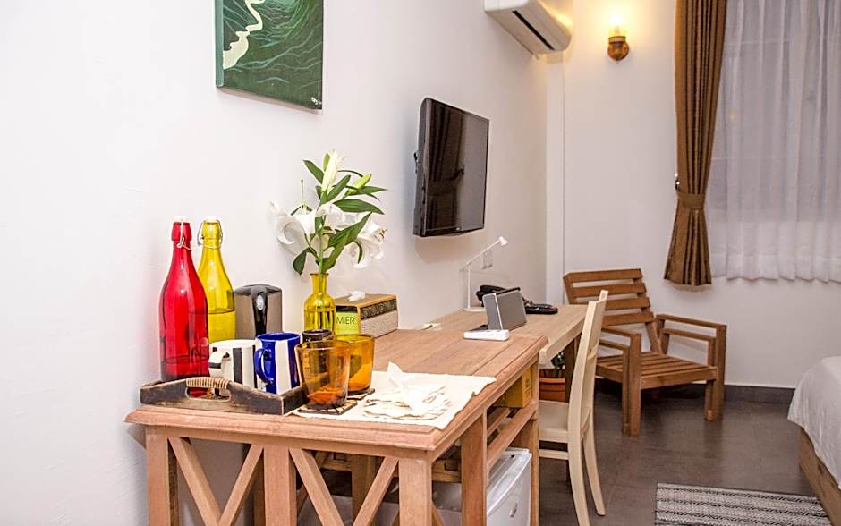 This double room features air conditioning, electric kettle and seating area.
