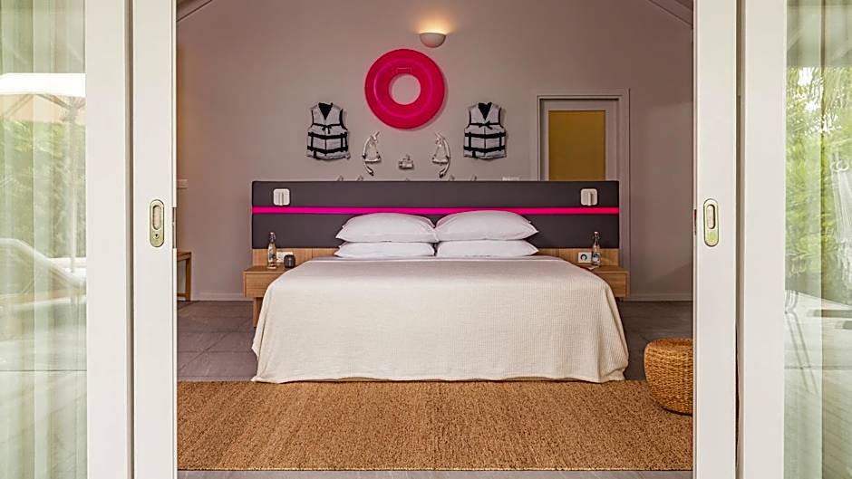 The dreamy, 2 Bedroom Lagoon Overwater Pool Villa gives groups and families alike a little bit of everything. This is one of the largest villas on the property and features a direct access to the island's turquoise lagoon.