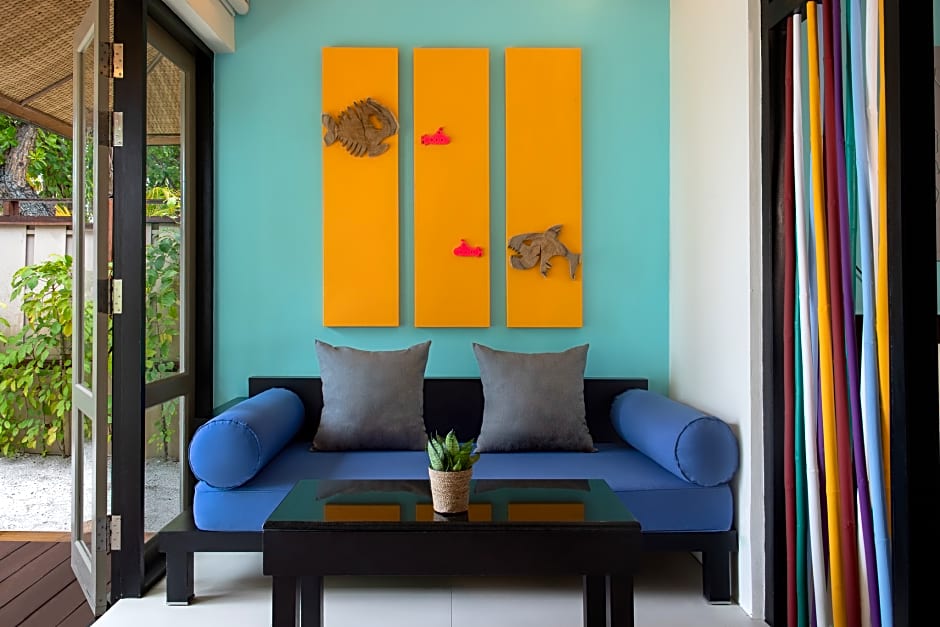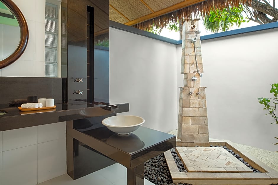 Large villa includes a Maldivan swing and a private, open-air jet pool in the garden. Includes a veranda leading to a private garden and sun lounger.