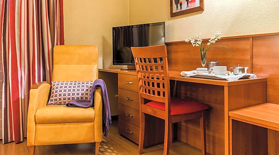 This room has a furnished balcony overlooking the internal courtyard and the mini golf course. All rooms are air conditioned and come with satellite TV and a fridge.