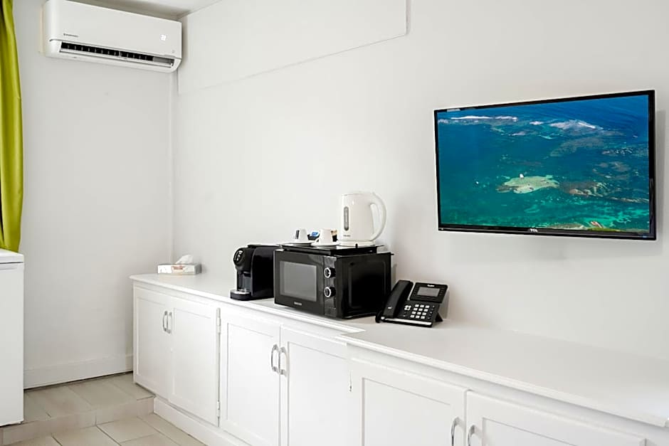 Offering free toiletries, this quadruple room includes a private bathroom with a bath and a shower. The well-fitted kitchenette has a refrigerator, kitchenware and a microwave. The spacious air-conditioned quadruple room offers a TV with cable channels, a tea and coffee maker, a wardrobe, a safe deposit box as well as sea views. The unit has 3 beds.