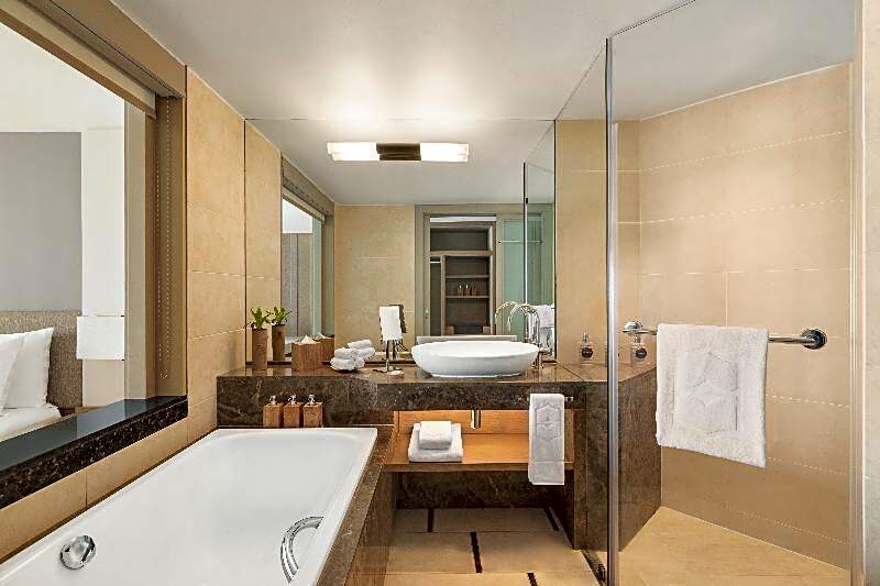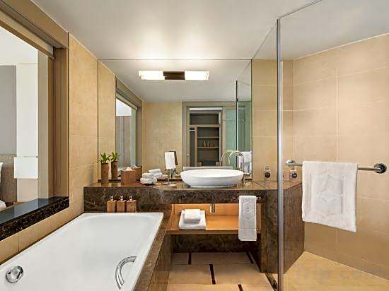 The hotel has four on-site restaurants: Safran offering Indian cuisine with a romantic ambiance, Kushi with modern and romantic ambiances serving Japanese cuisine, Republik Beach Club & Grill featuring Mediterranean and BBQ grill cuisines, and Le Bazar offering a diverse range of cuisines including Cajun/Créole, Cantonese, Chinese, Mediterranean, local, Asian, and international dishes.
