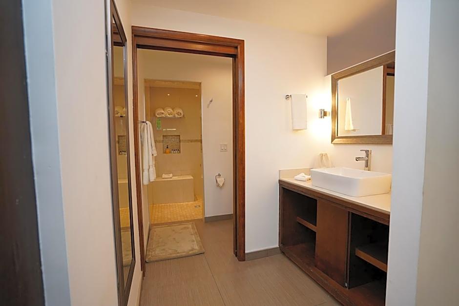 The hotel offers a variety of room types including suites and double rooms. All rooms are non-smoking. The Junior King Suite with Hot Tub and the Junior King Suite both have a king size bed and can accommodate 2 adults and 1 child. The Queen Room, Queen Room with Two Queen Beds, and King Room with Two King Beds all have queen or king size beds and can accommodate 2 adults and 1 child or 4 adults and 3 children respectively.