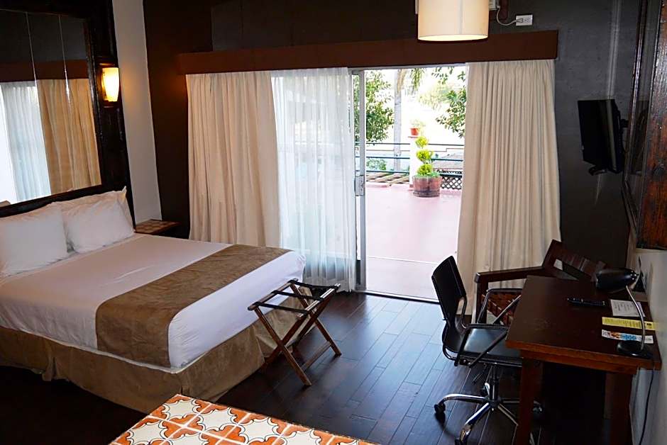 A sunny terrace and garden offer relaxing spots, with the pool and bar adding to the laid-back Ensenada vibe.
