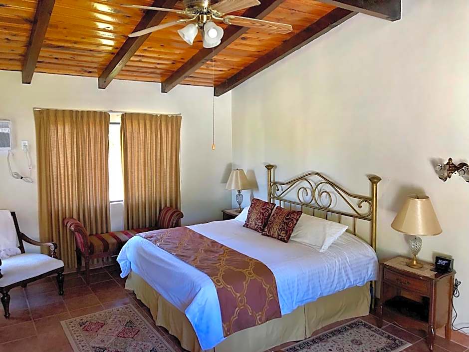 At Rancho el Parral, guests can enjoy a variety of leisure amenities during their stay. They can relax at the spa or steam room, rejuvenate in the sauna, or take in the garden view from the terrace. A picnic area is available for those who prefer outdoor dining. Dining at the on-site restaurant, Kings and Queen Cantina, offers a modern ambiance with American and Mexican cuisines to indulge in. The bar is a great place to unwind with a refreshing drink. Additionally, guests can benefit from the private parking and Wi-Fi facilities provided. Non-smoking rooms ensure a pleasant stay for all visitors at the hotel, making Rancho el Parral a wonderful choice for a relaxing and enjoyable getaway.