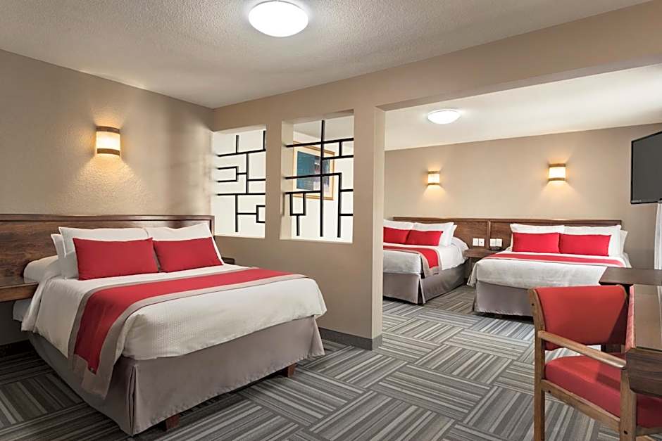 The Ramada Plaza by Wyndham Leon offers a variety of room options. There are Triple Rooms with three double beds, Double Rooms with disability access, King Rooms with one king bed, Standard Double Suites with two double beds, Deluxe Suites with two double beds, and Double Rooms with two double beds. There are also King Rooms with two king beds and Double Rooms with one double bed. All rooms are non-smoking. Occupancy ranges from 2 adults and 1 child to 6 adults and 2 children. Room sizes range from 215 sqft to 431 sqft.